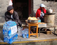 Anyway, the park was very nice although the vegetation had only began to hint at changing colours. The hack up the mountain was gruelling and crowded all the way up and down with throngs of people. Because of all the people it took about two hours to reach the top and boy was it a hack ... I don't think I want to do that again. After reaching the top, wall-to-wall people eating and taking pictures in front of a rock with Chinese script upon it and guys holding up flags into the wind that was whipping across the top. Boy what a view of Beijing and the Forbidden City below.I was lucky enough to find a place to sit and eat lunch before making my way all the way back down.